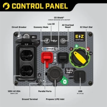 - Includes A 120V 20A Household Duplex Outlet (5-20R) With Clean Electricity (Less Than 3% Thd), And Two Convenient Usb Ports, Plus Features CO Shield® Carbon Monoxide Auto Shutoff System