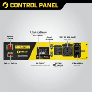 - Champion® 3650-Watt Portable Generator With Wireless Remote Start / Co Shield