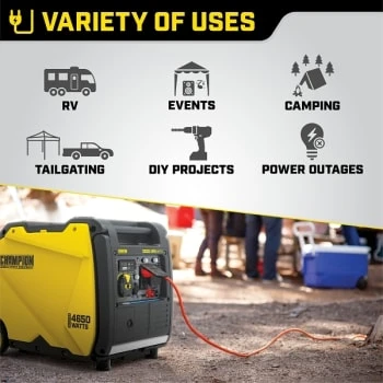 - Champion 4650-Watt RV Ready Inverter Generator with Quiet Technology and CO Shield