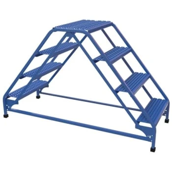 - This unique Dual-Sided Step offers more versatility. The steps are made from perforated steel or grip strut steel. The base includes four feet with rubber tips to protect the floor. Portable units have four spring loaded casters. Individual steps are either 17″W, 24″W or 30-1/4″W x 7″D with the top step measuring 14″D. Steps are spaced 10″ apart. Constructed of steel with a powder-coated blue finish.